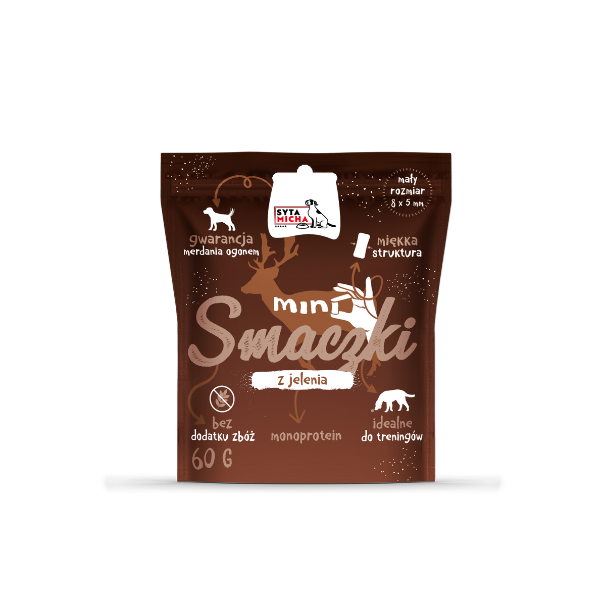 Smaczki MINI з оленини — це ідеальні ласощі для тренувань, особливо для собак дрібних порід.