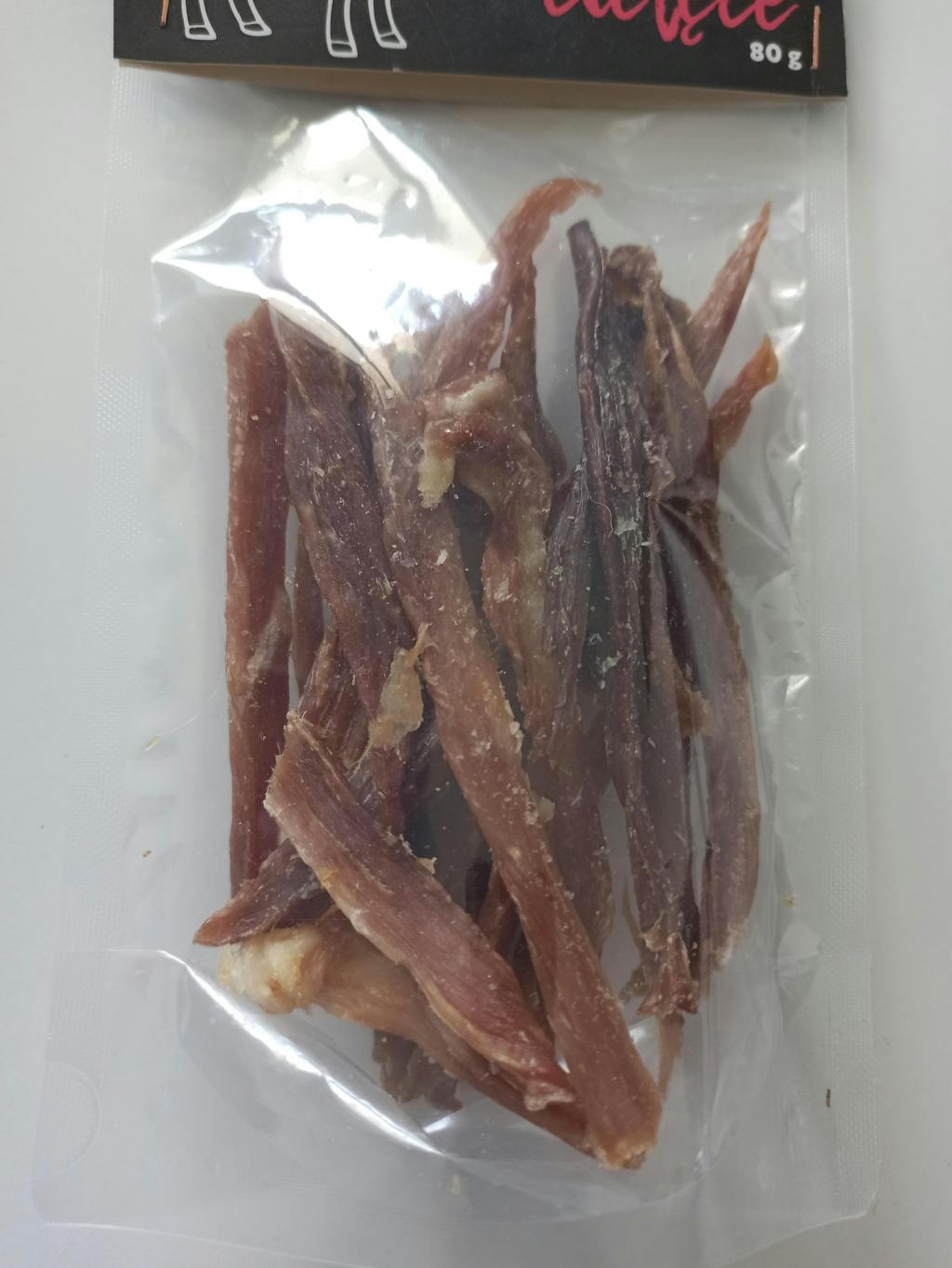 Це натуральні ласощі, які вручну нарізають і пакують із максимальною ретельністю. Надійне закриття гарантує свіжість і безпеку для здоров’я собаки.