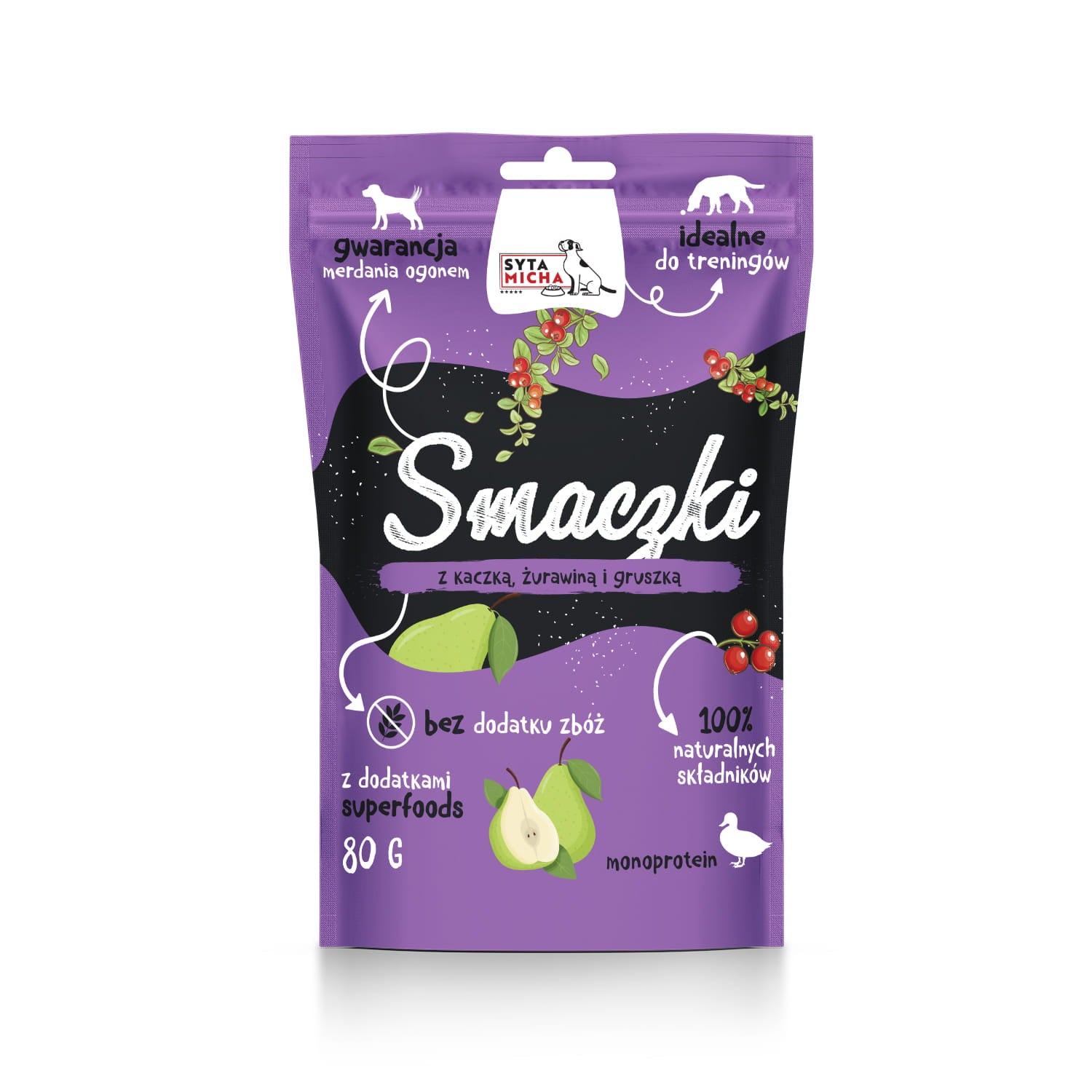 Ласощі від Sytej Michy чудово підходять для тренувань, а пакування з застібкою-блискавкою забезпечує комфортне зберігання, зберігаючи постійну свіжість і пружність кожного шматочка.